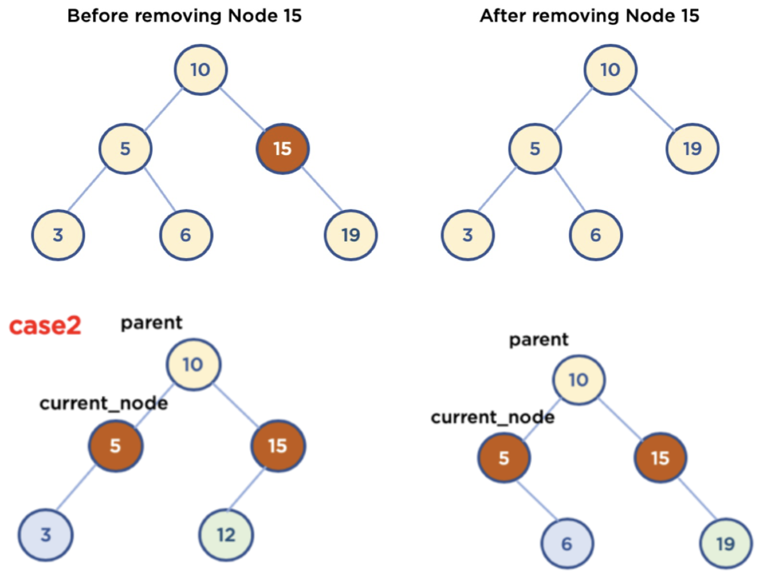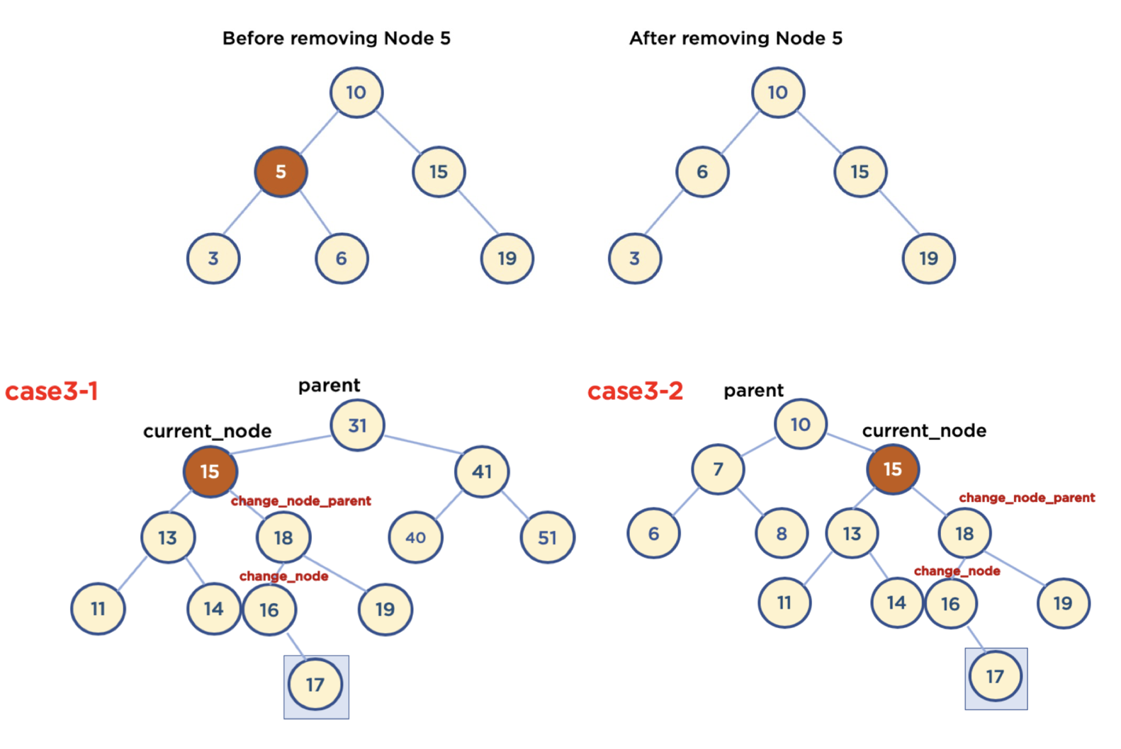 self.parent.right = self.cur.right3. ์์ ๋ ธ๋๊ฐ 2๊ฐ์ธ ๊ฒฝ์ฐ