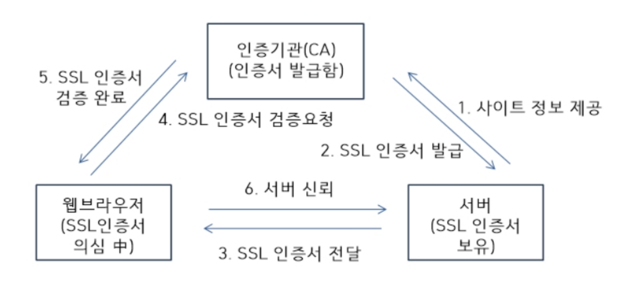 - ์ธ์ฆ ๊ธฐ๊ด(CA)๋ ํด๋น ์๋ฒ์๊ฒ SSL ์ธ์ฆ์ ๋ฐ๊ธ