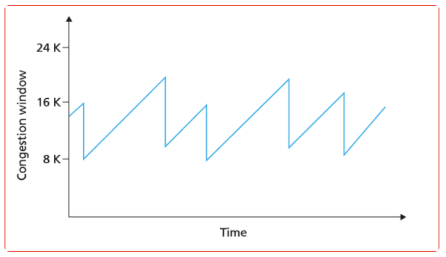 혼잡한 상태가 되면 window size를 반으로 줄이고 선형증가시키는 방법