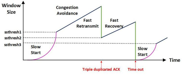 - 혼잡 상황을 한번 겪고 나서부터는 AIMD 방식으로 동작
