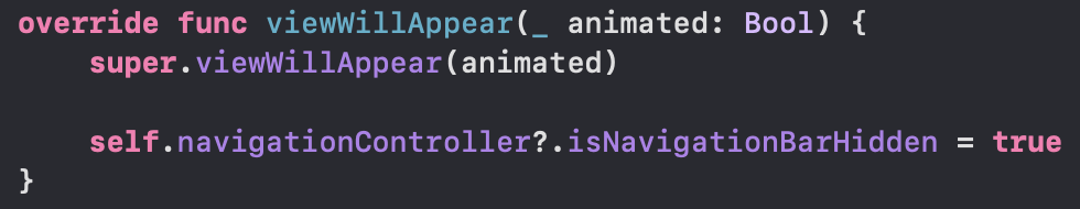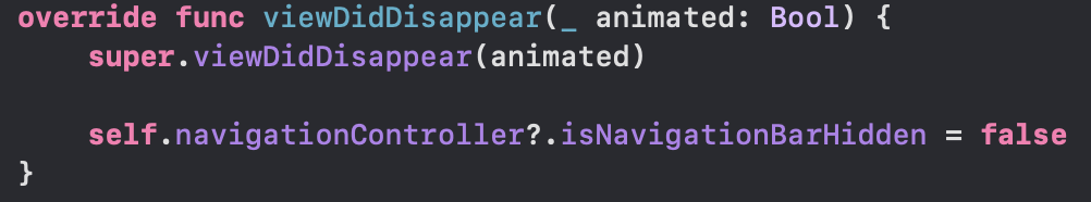 Navigation Controller로 묶인 모든 뷰 컨트롤러들의 navigatonBar를 숨기므로요렇게 다시 false 설정 필수